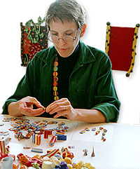 I snapped these pictures at Pier’s class in 2001. She took slices from one simple cane and in a couple of minutes combined them in more ways than I imagined possible.