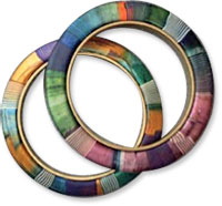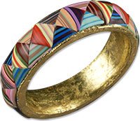 Bangles are everywhere! Corliss Rose (2RosesJewelry) recently stitched up a fabulous polymer patchwork bracelet. She took the quiltmaking that she learned from her grandmother and brought it to polymer. The Roses experiment with all kinds of materials and it’s great when polymer pops up in their work.