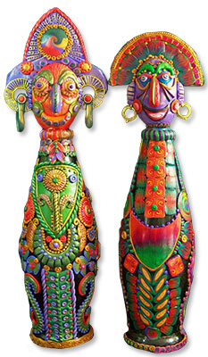 Joan Israel’s vision of the royal couple may not match those in the news headlines but her 17″ polymer cane slice covered bottles have a very regal air. She’s been on a bottle jag that’s fun to study. My favorite is her scotch bottle.