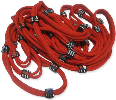 Debbie Jackson upcycles t-shirts with striking ethnic polymer beads.