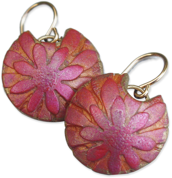 Nikki gave up her glass studio after 18 years and found a home in polymer so she’ll bring lots of relevant skills to her new medium. I like the placement of the findings in these earrings. Her photos show that she’s off to an promising start. Have a great weekend!