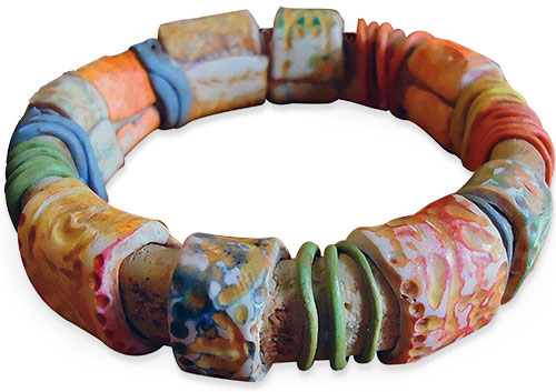 Greece’s Anarina Anar displays her vibrant polymer works only on Facebook. (Thanks to Conny Brockstedt who found her on Flickr as well.) Anarina’s textured and painted surfaces have very aggressive, passionate energy.
