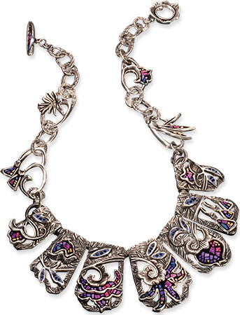 Cindy Silas entered this intricate metal clay/polymer necklace in the 2013 Saul Bell Design Awards and she’s a finalist!