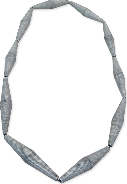 This black and white necklace from the UK’s Angela Garrod was in the Synergy gallery and I couldn’t get the idea of its extrusion-wrapped cones out of my head so I’ll leave it with you this weekend.