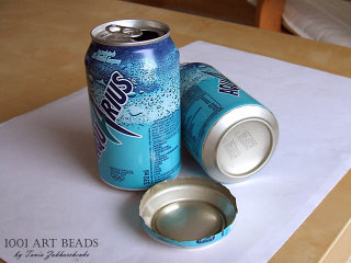 Tania Zakharchenko‘s (Russian, I think) uses the bottom of beverage cans to form nice brooch shapes. Of course, why didn’t I think of that?