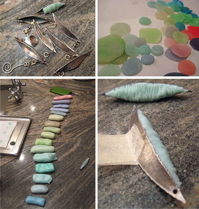 It’s hard to explain (especially late at night). Here are a few pictures of his collaboration with Robert Dancik who created the metal boat shapes that Seth is filling with his glass-like gills. His almost micro-mosaic technique is alluring. I find myself wondering about the possibility of faux beach glass. Anybody tried?