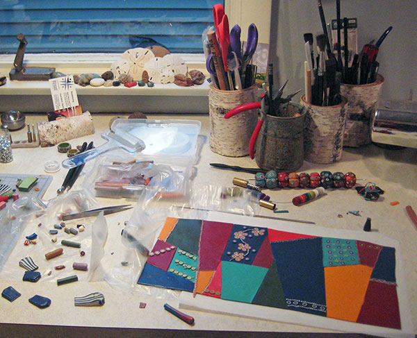 Gera Scott Chandler shows her “starter sheet” of polymer that ends up covering a series of her fusion bangles.