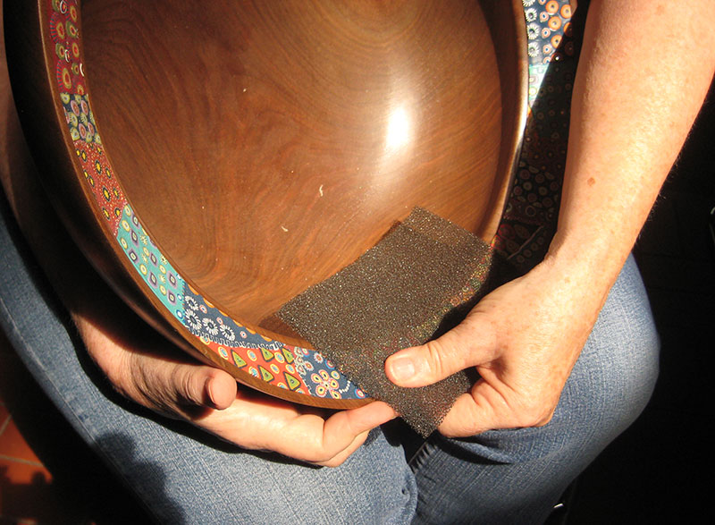 I was on Gera Scott Chandler’s wavelength last week as I prepared a big sheet of polymer for inlay into a walnut bowl turned by my husband. Gera imagines stained glass while I gravitate to quilts and textiles. We took two very different paths and both ended up with an efficient way to cover a lot of ground.
