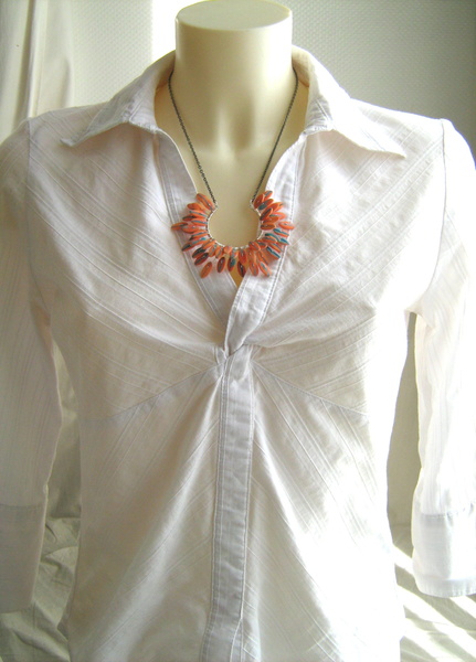 In addition to selling them for sewing onto clothing for fashion accents, Mari ties buttons onto flipflops using waxed linen cord.