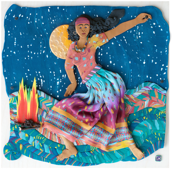 Another poem called Gypsy inspired this 12″ piece filled with the great polymer fabrics that Susan is known for. Here’s her old fabric tutorial that I have to drag out again because it’s my favorite.