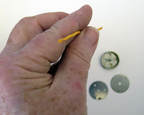 To meet his quota of 10-12 polymer heart pins each day, Ron Lehocky has to get up early (we shot this video at 7:00 a.m.) and take advantage of every spare moment.