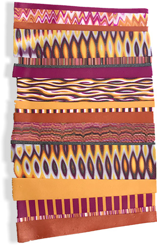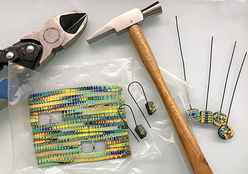 A group challenge pushed Wisconsin’s Erin Prais-Hintz out of her comfort zone and into these collaged beads and surface treatments.