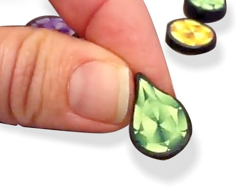 Make the cane and then shape each slice into whatever cut you prefer- brilliant, pear, marquise, emerald?