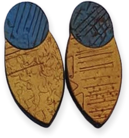 She takes the football shape (or is a leaf shape a more accurate description) and combines with squares, circles, rectangles to arrive at a whole collection of earrings.