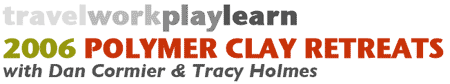 As seen in his teaser tutorial, "LINES" in PolymerCAFE Magazine (Winter 2005/2006), Dan has developed "The Cutting Edge," a whole new system for surface design, a repertoire of techniques that are as versatile and complementary as they are accessible. An ideal intensive for anyone new to this medium or these techniques, or an enriching encore to those who've already been to "the edge."