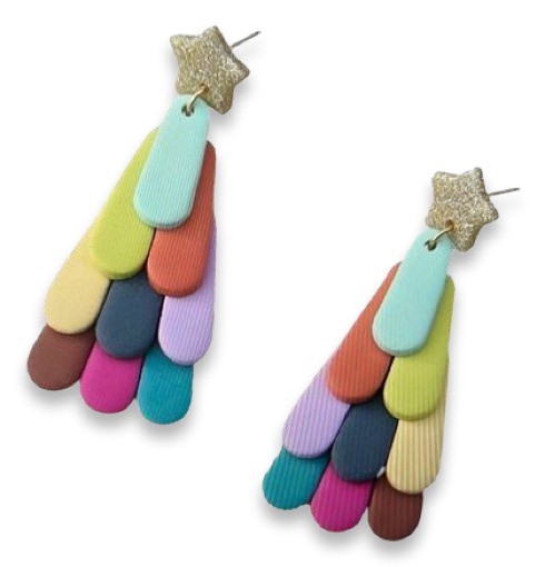 She stacks the shapes with the top one hanging over slightly so that she can attach the star and jump ring.
